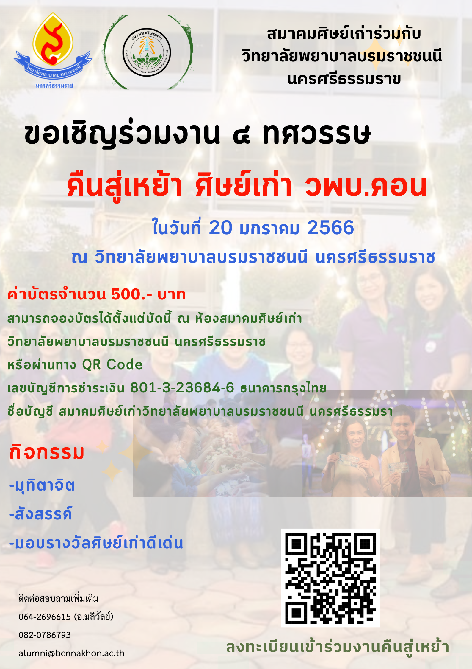 ขอเชิญร่วมงาน 4 ทศวรรษ คืนสู่เหย้า ศิษย์เก่า วพบ.คอน